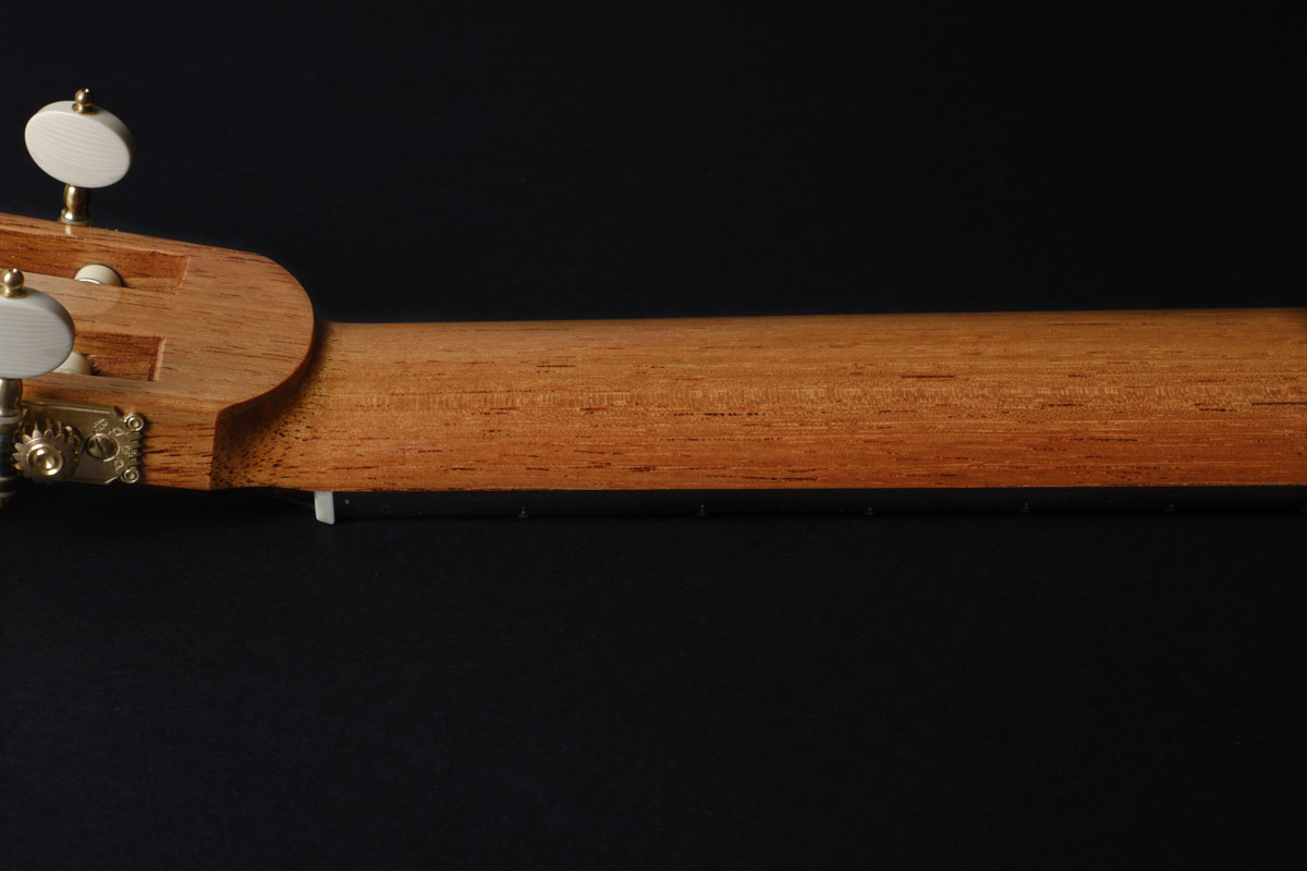 这把 jitamen.com/Madera 吉他所使用的木材也是一大亮点。云杉面板拥有大量细密分布的髓射线(“espejuelo”),几乎遍布整块面板——照片中清晰可见,尤其是我们特意在不同光线角度下拍摄的一张照片,更好地突出了这一特征。这种极高质量的材料虽然本身不能直接决定音色的优劣,但对于像吉廖利这样拥有知识、经验与天赋的制琴师而言,它无疑提供了一个理想的基础,助其充分发挥声音潜能。