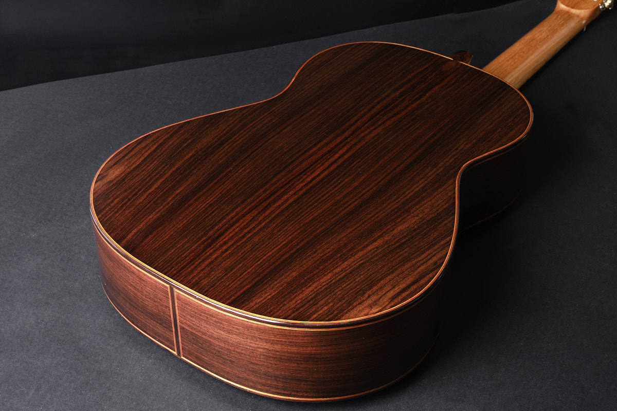 在声学方面,我的工作更像是一种持续探索,而非追求某个理想的声音。尽管每一把吉他都是独一无二的,且吉他的本质始终带有一层神秘感,我仍希望能塑造出属于我自己的音色。我追求泛音的自然流动,以及它们与乐器之间复杂又微妙的关系,从而产生一种能打动演奏者、激发他们灵感的音色:当第一个音符响起,第二个便会自然随之而来。”