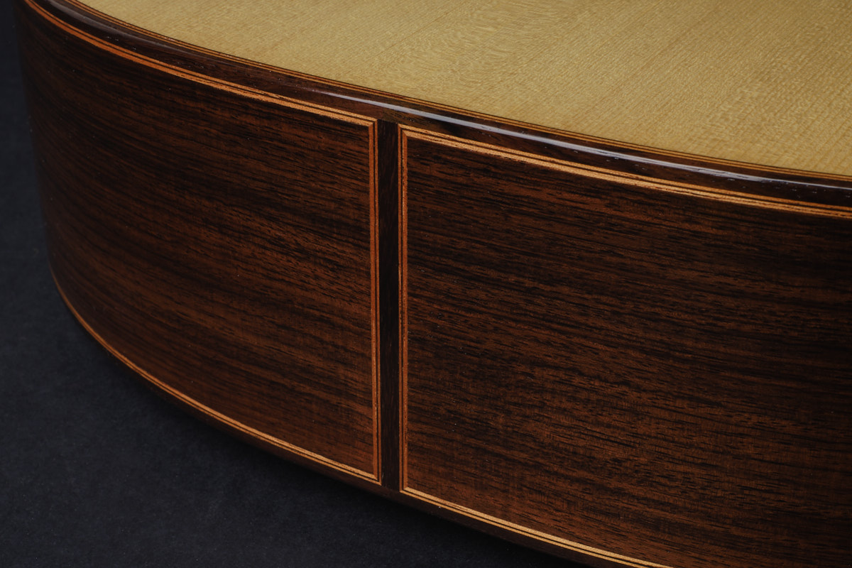 这把吉他中还蕴含着一种真正的热情——对吉他、对声音、对工艺、对传统的热爱。这份热情建立在严格、细致和一丝不苟的态度之上。每一个细节都经过深思熟虑、精心打磨,并以极高的感性与精准度完成。这种自然流露出的敏感与才华,在 Oreste 身上展现得淋漓尽致,同时也得益于他与格拉纳达吉他制作传统发展中的重要人物——他的老师 Daniele Chiesa 的深厚联系。