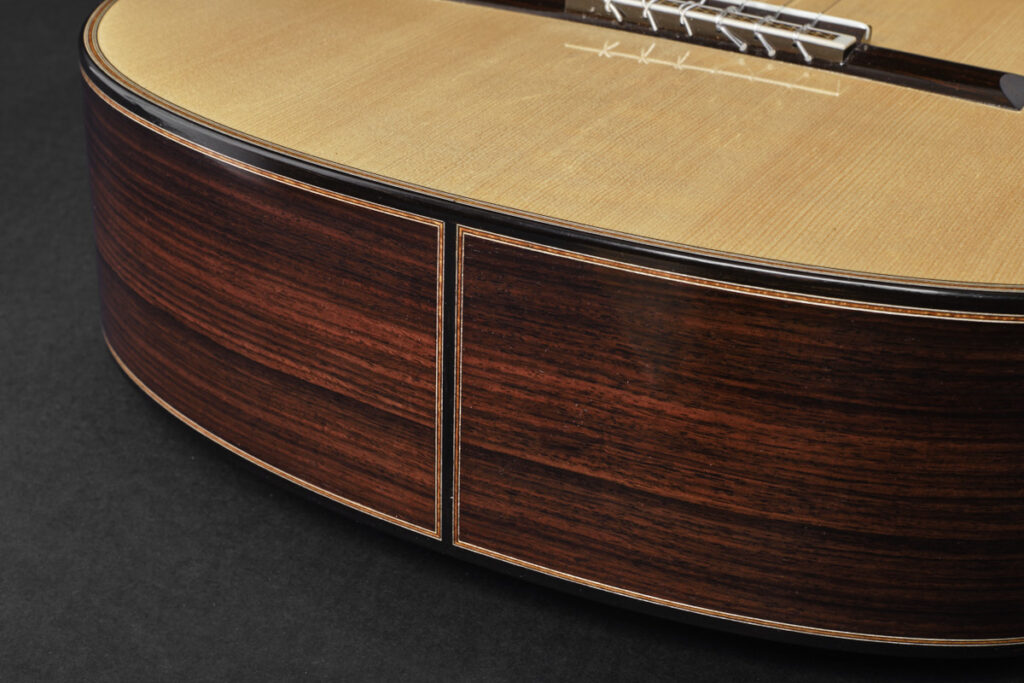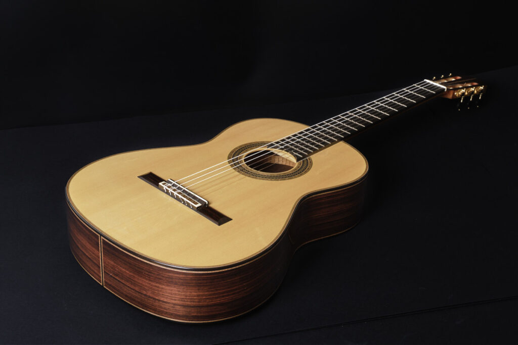 这是一把面向音乐厅设计的现代吉他,具备强大的音量投射力,同时丝毫不牺牲西班牙传统音色的美感与表现力。我们欣赏拉斐尔·丹托内在定义其“西班牙传统风格”方面所采取的方式:清晰、坚定,并富有音乐性。