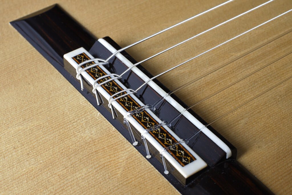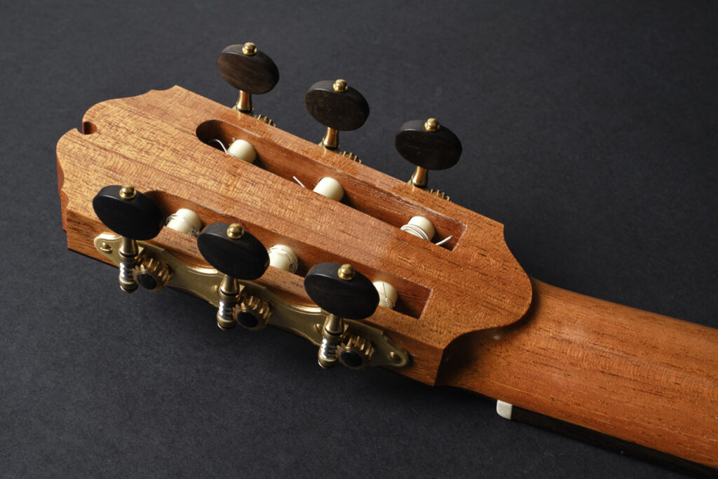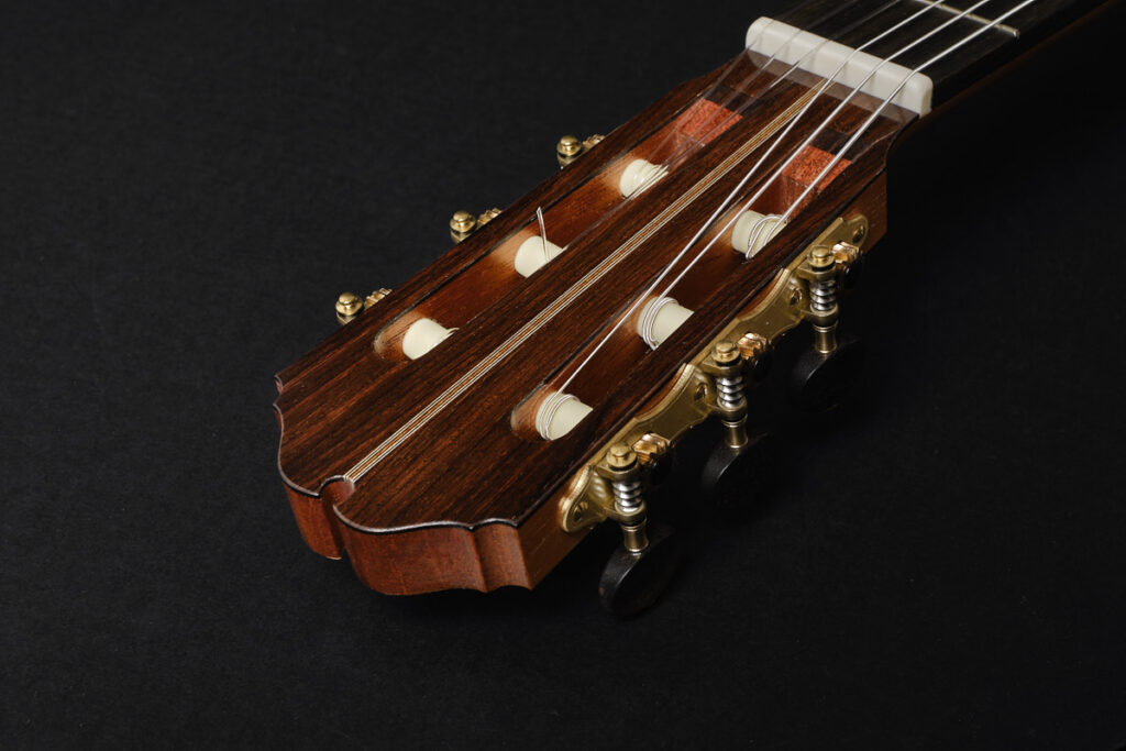 结构方面,这把吉他受到豪瑟(Hauser)传统的启发,在模版(plantilla)、力木结构(bracing)和整体建构上都延续了经典。但丹托内的个性已经清晰可见:他对美学的视野以及对音色的探索,逐渐塑造出一种属于他自己的“丹托内音色(Dantone tone)”,这是我们深感激动的一种个性化标记。