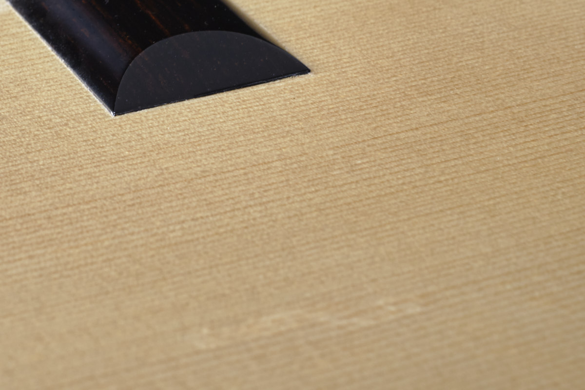 丹托内来自意大利北部山区的特伦蒂诺,这一地区以出产世界上最优质的吉他音木——云杉(spruce)而闻名。在这些古老树林之间长大,似乎赋予了他对木材材料一种特别的敏感。他与木材之间的关系,是生活环境的一部分,也是日常的一部分,而这种与自然的深度连接,也在他的吉他中得到了某种体现。从童年起包围他的自然风景,与他双手转化木材的方式之间,有一种有形的联系。他的作品表达出这种对原始材料的亲密关系,以及对其本质与美的敬意。